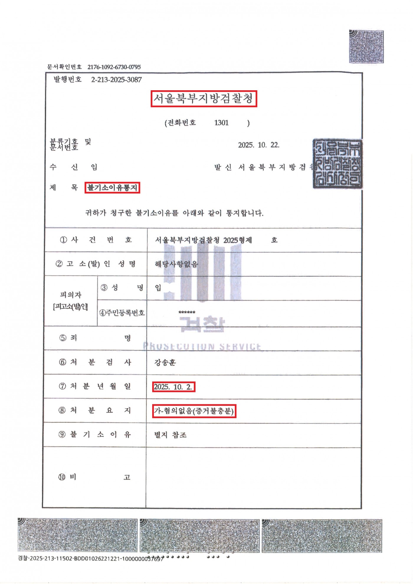 [형사] 페이지 정보 작성자 : 관리자 작성일 : 2025-12-16 16:26 조회 : 17회 이전글 다음글 목록 본문 서울북부지방검찰청2025. 10. 2. 혐의없음 처분 결정 이전글 다음글 목록
